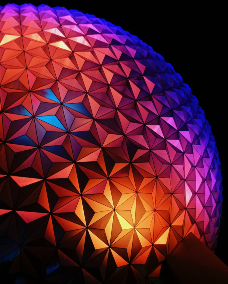 The next photo is another one from my visit to Disney World. This one is from Epcot and is the very big and famous sphere called the Epcot Ball, also known as Spaceship Earth. During the day, the sphere is only white and not lit up. It is very impressive but not too much to look at since it was just a big, white ball. When we finally left the park, it was pitch black out. My friends and I saw the sphere and were shocked and amazed because we had no idea it lit up at night. This was another quick picture that I snapped while walking out of the park with my friends but turned out great. Surprisingly, I only had to edit this photo a little bit. The colors were already so vibrant in real life that I did not need to enhance it too much to get the final product. I love the different patterns and shapes that the sphere creates and how the lights reflect off each part. There were many stars in the sky that night but none came out on the final photo which I preferred because it kept the attention on the sphere and the intricate design of it. The photo holds so many memories and I was glad I was able to capture such a beautiful part of my trip.
